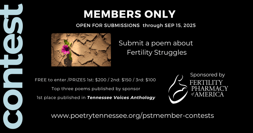 The Poetry Society of Tennessee (PST) formally announced its members-only July 2025 contest results at their July 12 member meeting. Winners receive cash prizes. The first place poems will be published in an upcoming edition of PST’s anthology, Tennessee Voices.