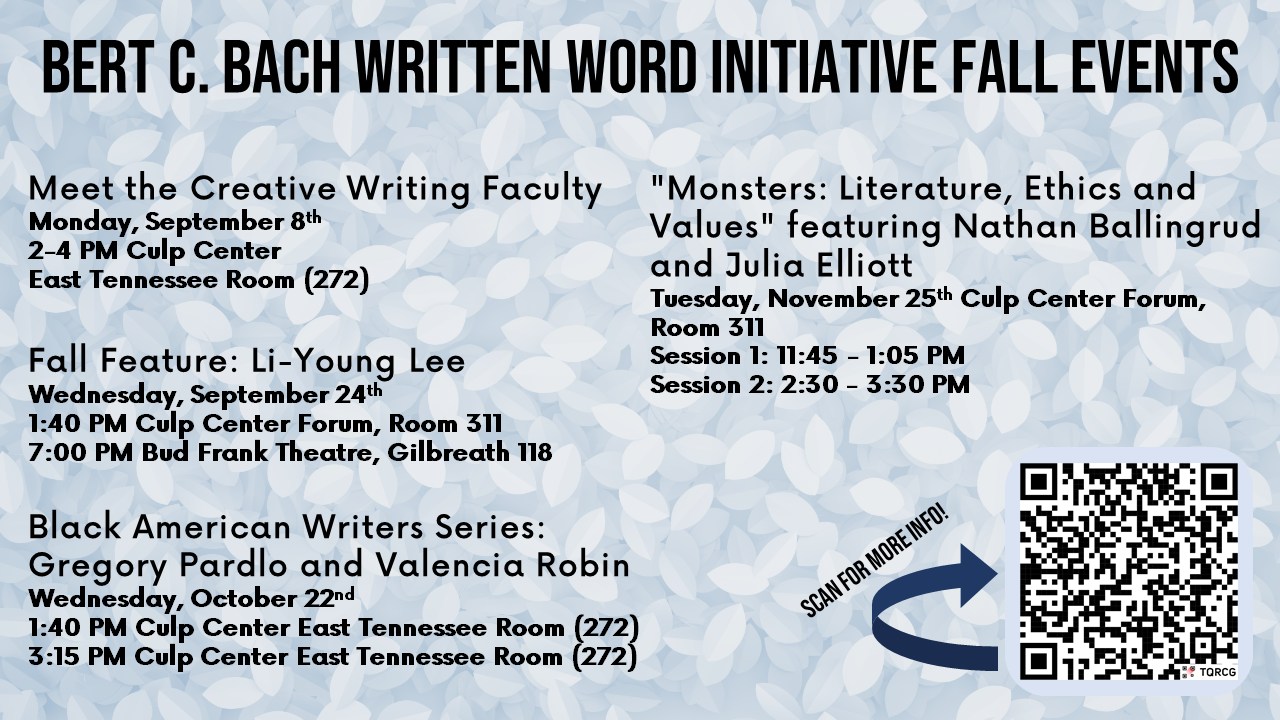 - The Bert C. Bach Written Word Initiative offers programs related to literature and creative writing at ETSU